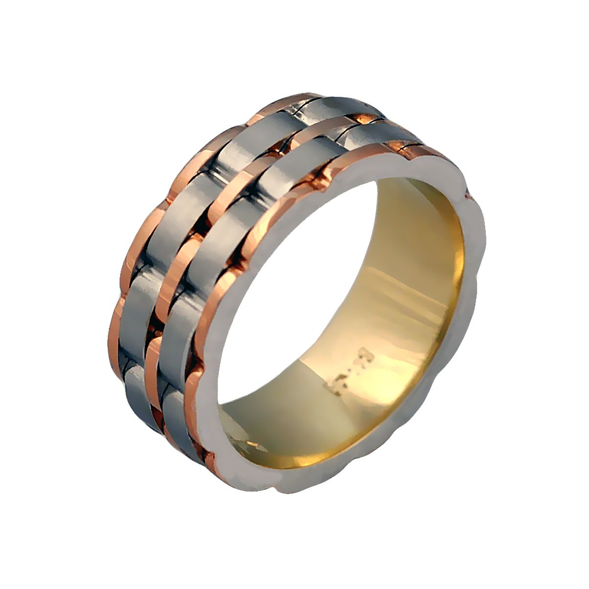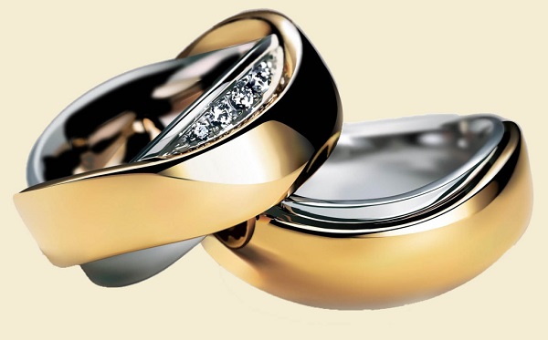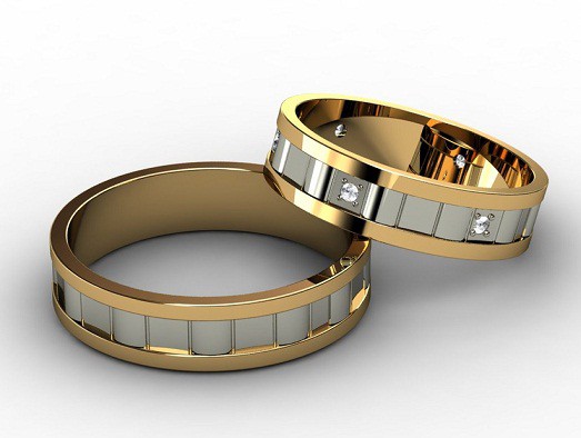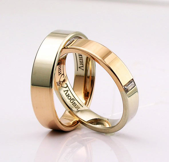 An interesting solution for paired jewelry can be rings made of metals of different colors. For example, a great option are wide models in which two or three kinds of gold (yellow, white and pink) are combined. An economical option would be copies made from a combination of gold and silver.