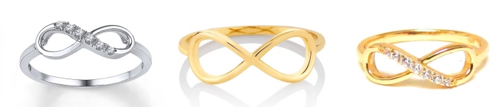 At the peak of popularity are rings with the symbol of infinity. The sign can be located on the upper part of the ringlet, hidden in an openwork weave of metal or deposited on the surface of the ring.