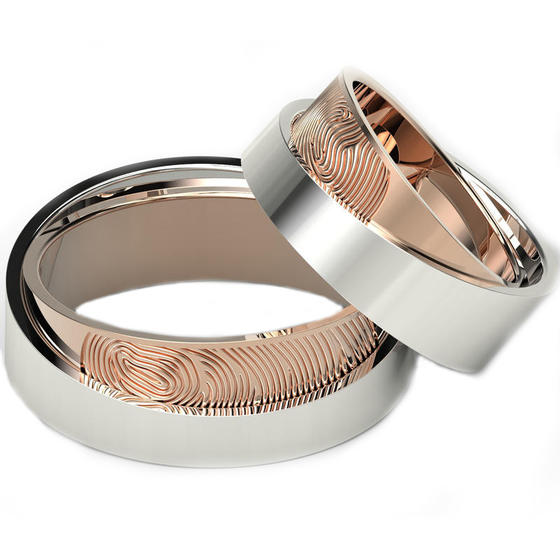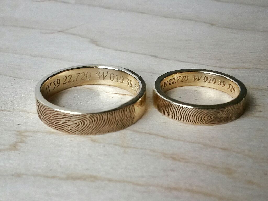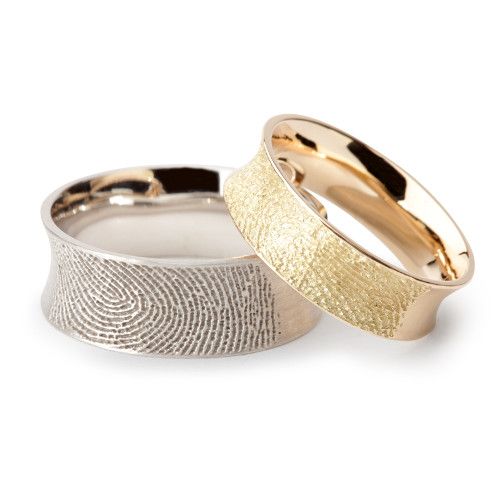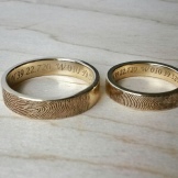 The fingerprint can be both on the outside and on the inside of the jewel. In the latter case, the ring will always remind you of the presence of a loved one by your side, because his hand as if touches the finger of its second half.