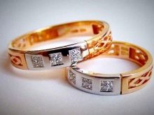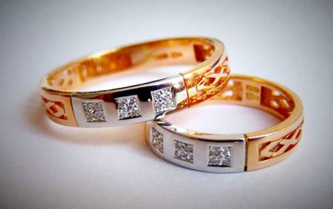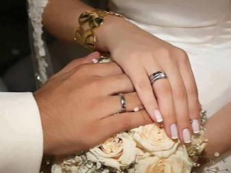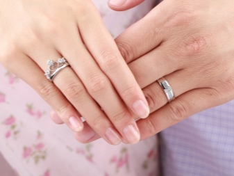 Sometimes the bride and groom dream that their wedding decorations are similar, but have a feminine and masculine design. In this case, suitable products, supplemented by the same stones or with similar patterns. It can also be a pair of jewelry with similar monograms, but the female ring is made of white gold, and the male is made of silver.