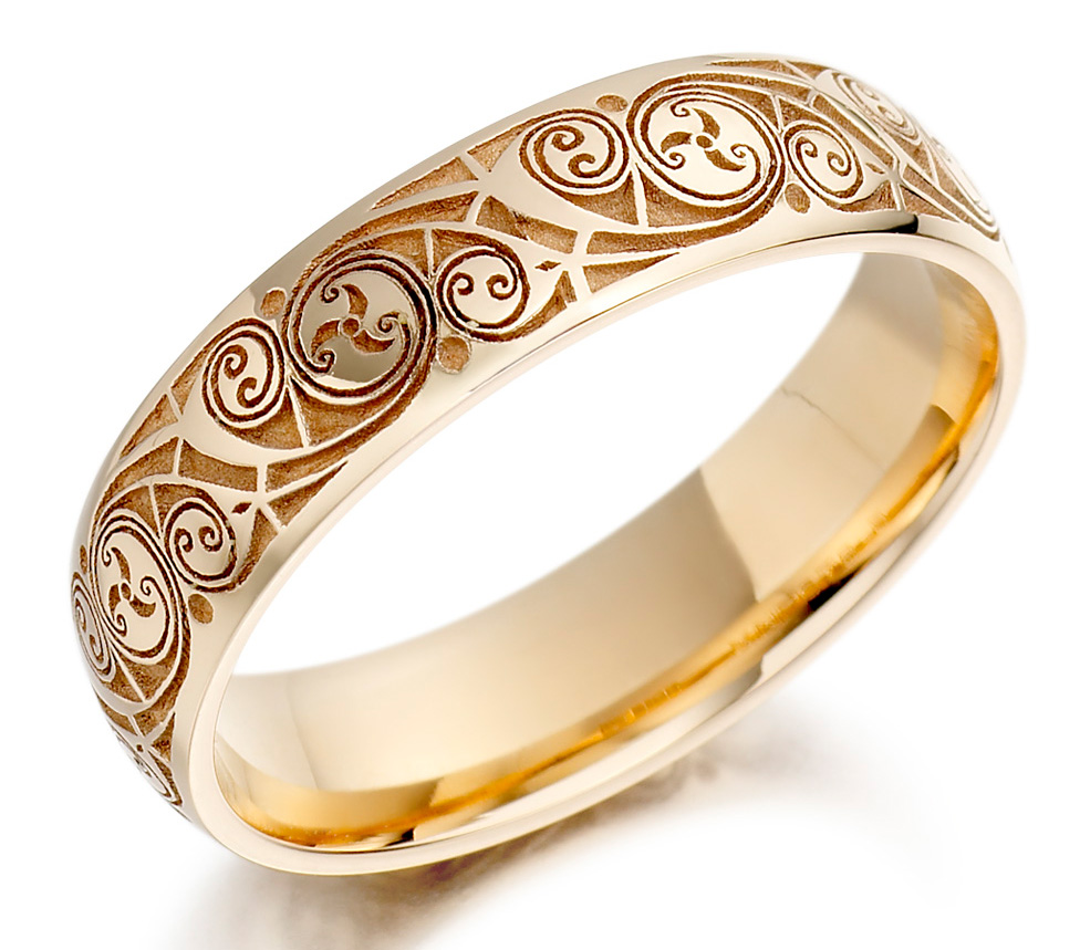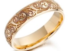 Products decorated with various curls look truly solemn. For example, Versailles patterns or an image of the tree of life can serve as a decor. You can order a unique pattern and then the wedding rings will turn into a true heirloom.