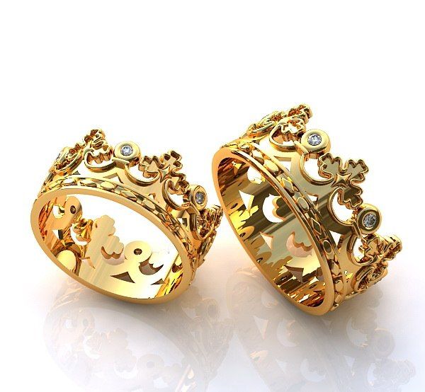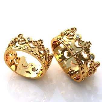 To show that the beloved is like a queen for her king, the bride is worn a ring in the shape of a crown on her finger. There are also paired models of such jewelry that are suitable for both men and women. With such rings, the bride and groom will look like a prince and princess.