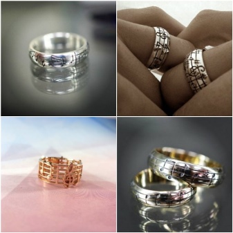 Sometimes on wedding rings do engraving in the form of notes. It can be a real melody of a real work. The product will reflect the first wedding dance or song, under which the young couple danced for the first time. This decision is incredibly romantic, because the brightest positive emotions are always associated with the dance paired with the beloved.Such a wedding ring will always smooth out any conflicts, recalling past passion.