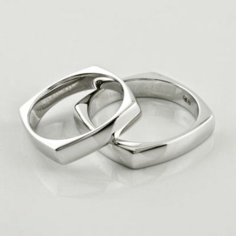 No matter how strange it may sound, but the square shape of the rings also exists. Due to their appearance, they look unusual, but elegant. This shape is perfect for paired jewelry, as the square ring looks on both female and male hand.