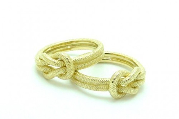 Marriage is entered by people who are willing to tie themselves together until the end of days. Wedding rings in the form of knots or chains can become a symbol of eternal love. A bolder modernization of the design of rings in the form of knots or chains is a jewel in the form of handcuffs. This idea has already been liked by many couples who wish to express affection for their second half.