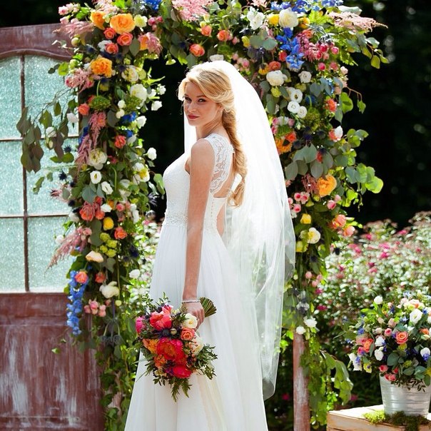 The decoration, which has such an inscription made in the form of a through pattern, looks originally. Such decoration is made exclusively for individual order. Therefore, a young couple should take care of their wedding decorations in advance.