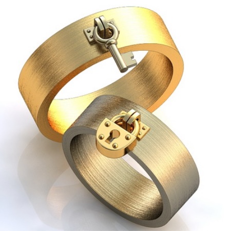 Jewelers instantly picked up this idea, bringing in their original solutions. Instead of the inscription of marital status can be a picture in the form of a heart, the first letters of the spouses name or the date of the wedding.