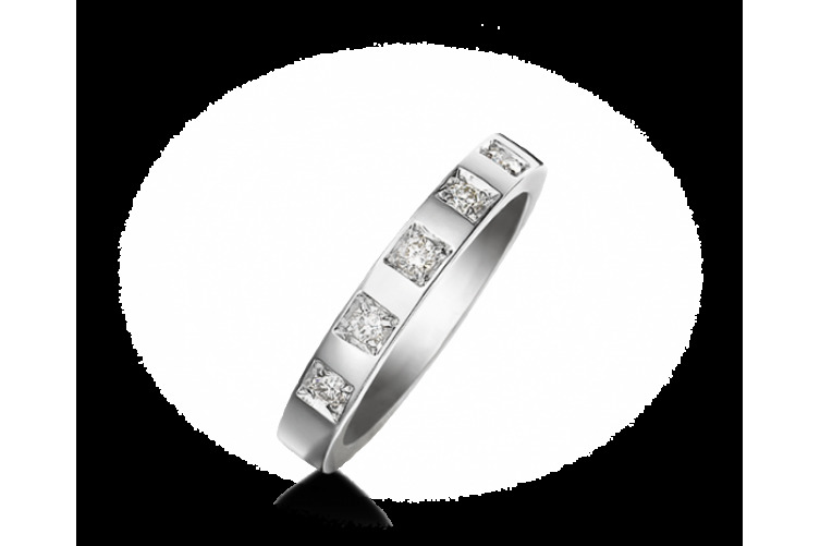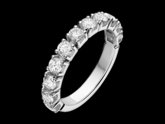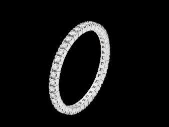 Narrow and flat bezel made of platinum or white gold. It can be decorated with a soliter diamond in a groove of the rim or with five small stones. The most expensive and chic option is a frame with inlaid small diamonds in one row, as a symbol of eternal love.