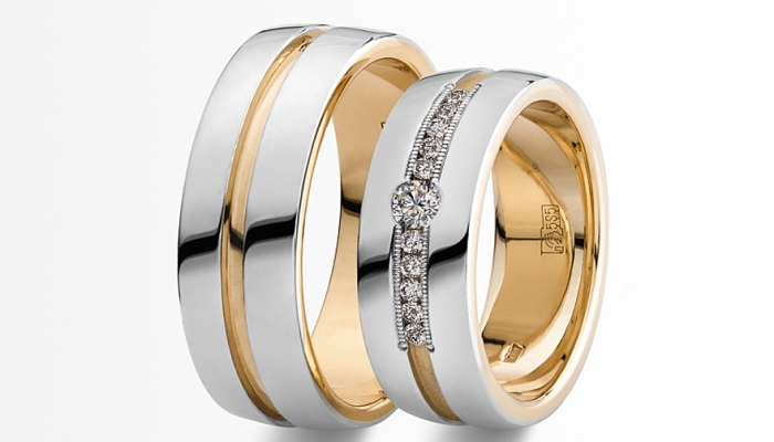 Wedding products are made of three basic materials - platinum and two colors of gold. In one product can also be used a combination of several materials.