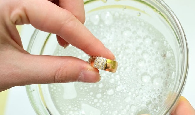 Gold rings with a diamond face must be protected from the effects of chemistry, including home-based detergents, washing powders, etc. During physical work, the product is best removed in order to protect it from scratches and deformations. If the ring is faded, then the gloss will return to it a soap solution with a few drops of ammonia. It is necessary to rinse it in this solution, then rinse with water.
