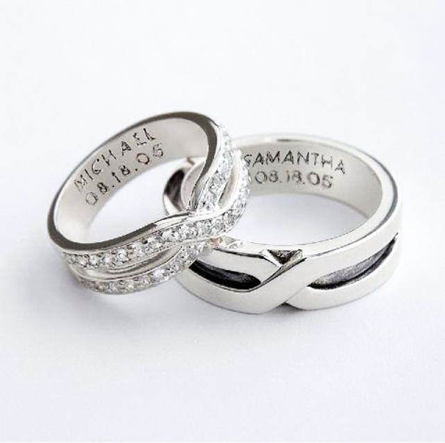 For many couples, the choice of rings falls on products with a similar or identical design. The most popular option is the classic models engraved with the date of the wedding or the names of the spouses.