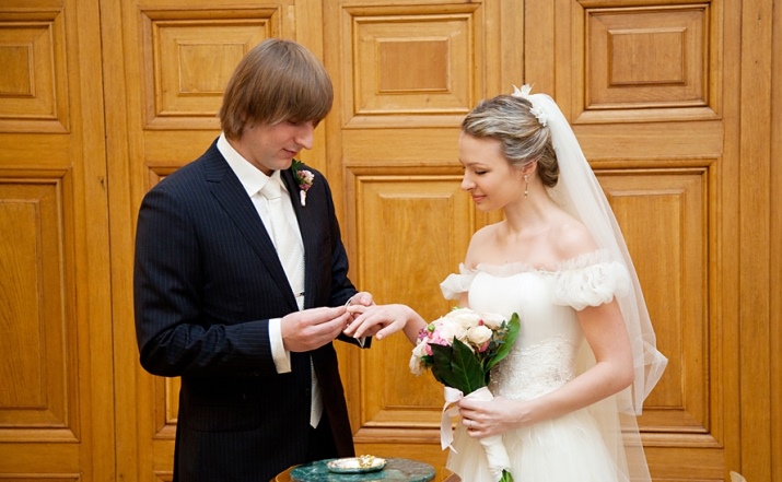 Today, white gold jewelry is very popular. If finances allow the newlyweds, the rings are decorated with a diamond place or one large stone. Such decorations are concise and restrained, but despite this determine the status of their owner.