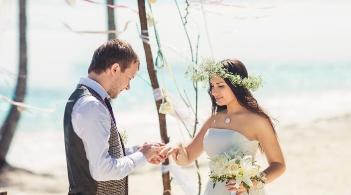 Ceramic decorations can be another option. They are made of silver, and then covered with ceramics. Now it is the most fashionable jewelry and their youngest couple choose.
