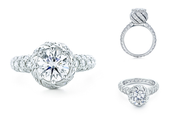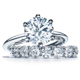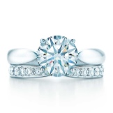 - The classic version of the wedding rings Tiffany Embrace attracts refinement of the work of masters. The frame with a large round diamond of 2.5 carats is decorated with a scattering of small graceful stones.