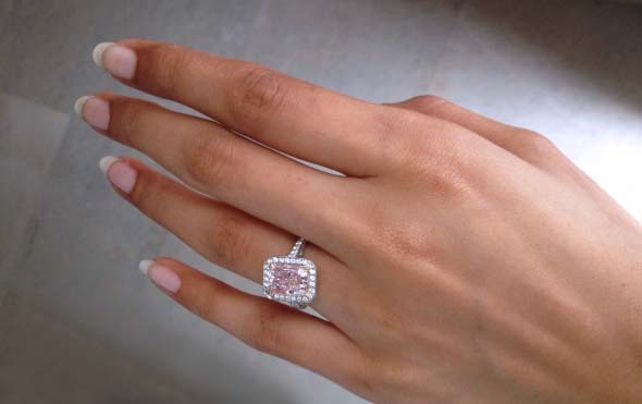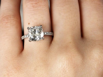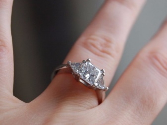- Novo jewelry has become a real achievement in the world of jewelry. The main advantage of the product is a large 2.5-carat square diamond with a frame decorated with small diamonds.