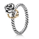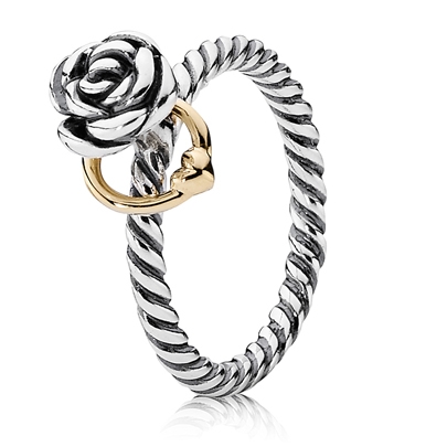 Floral theme is very loved by designers Pandora. Masters could not help but use flowers for the decoration of their products. A very popular model is the openwork ring, in which the metal is intertwined with a thin lace in the form of rose petals. Similar products can be found in both gold and silver.