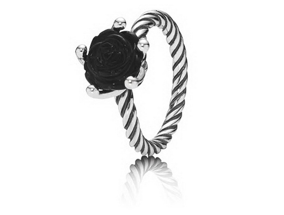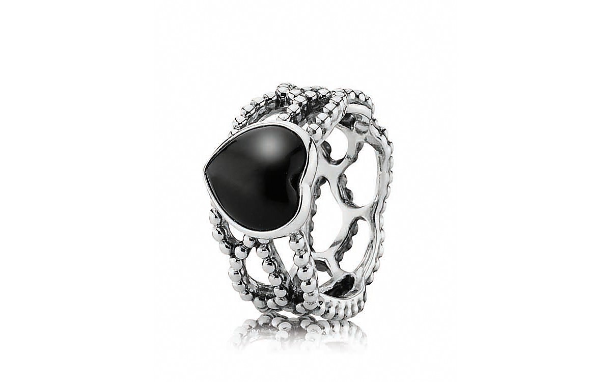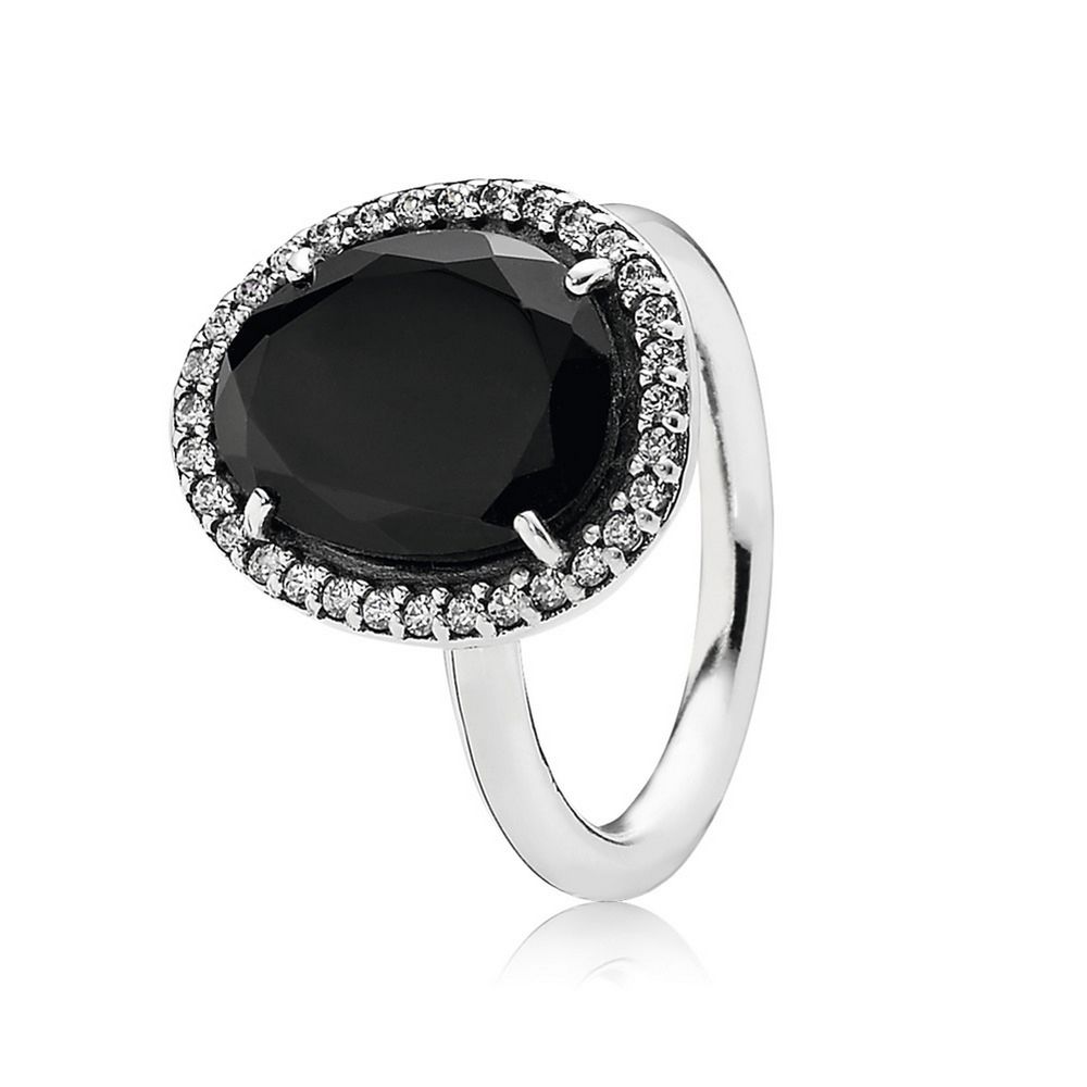 Rings with black stones look elegant and noble. Pandora has a variety of models with different designs that combine the presence of this element. This may be a large solid stone or a scattering of cubic zirconium in black. This product will suit women of any age and will be perfectly combined with clothes of any color.
