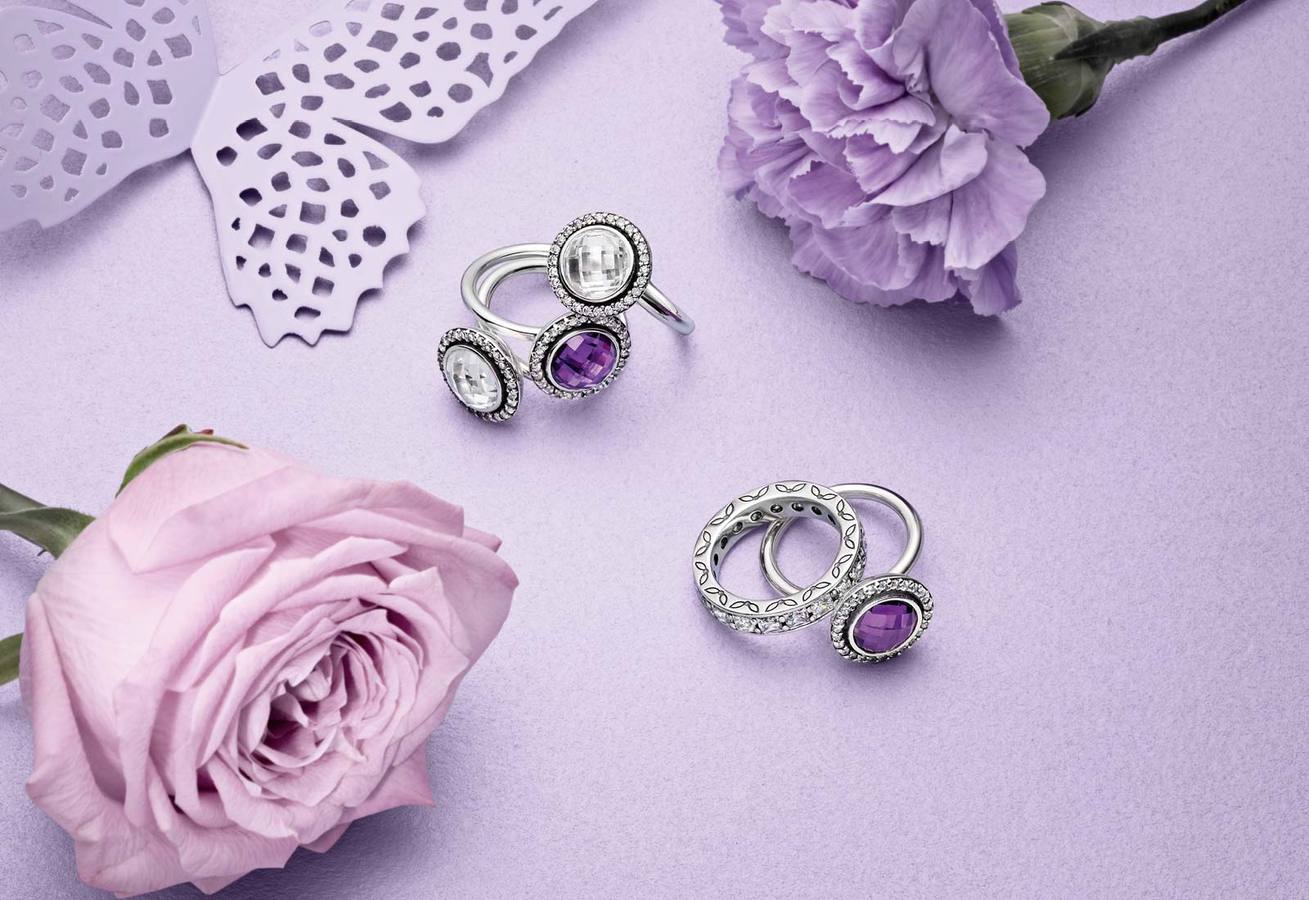 A separate place among the rings Pandora is a model of Forget-me-not. This silver ring is inlaid with a variety of purple and crystalline zirconias. It can be worn as a separate decoration, or combined with other models, distributing to the phalanges of the fingers. Decor in the form of a flower of forget-me-not is present in many other models.