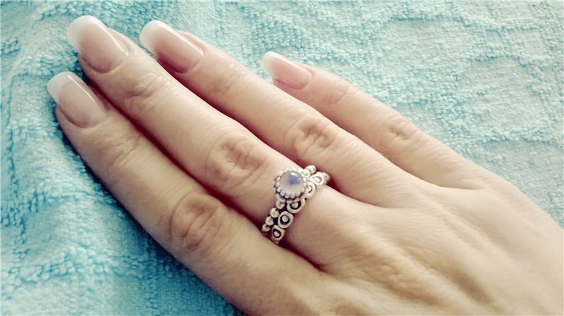 Pandora has a series of products with moonstones. The ring is made of silver and has a classic design. You can easily pick up other accessories to it, because the moonstone is quite popular in the products of other jewelry houses, which also combine it with silver.