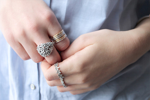 Masters of the world famous brand strive to ensure that women of fashion are free to select for themselves combinations of various types of jewelry products. Products are harmoniously combined even from different metals. The best combination will be an ensemble of rings of concise design, against which a model with a large decorative element will stand out.