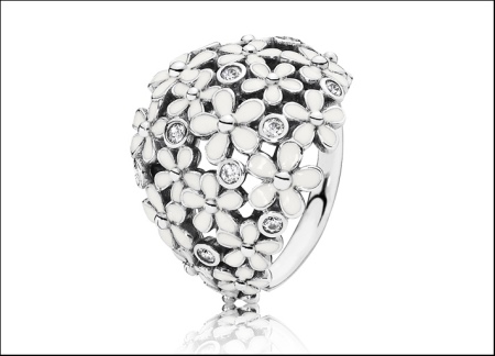 Daisy flowers with accessories belong to the Pandora product line. You can find models of rings with the decor in the form of a single flower or a whole “bouquet”. Daisy petals are made of the same alloy as the main part of the product. They are encrusted with stones or painted with enamel. Such decoration will emphasize femininity and excellent taste.