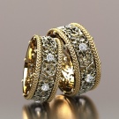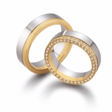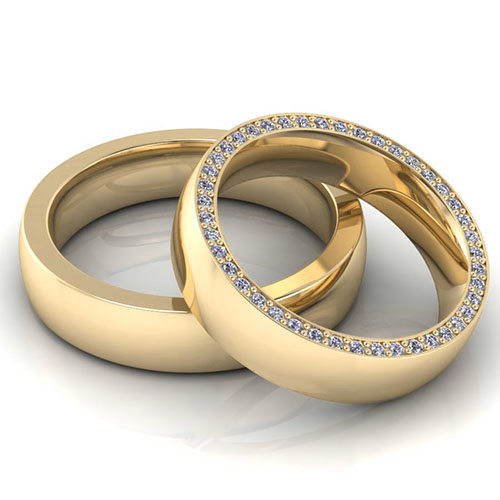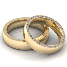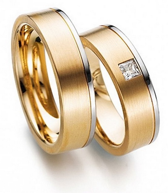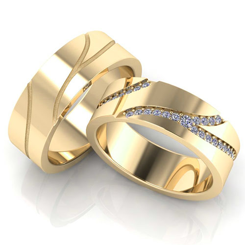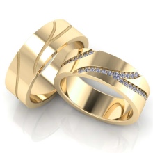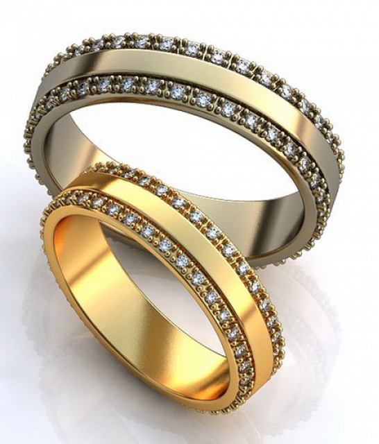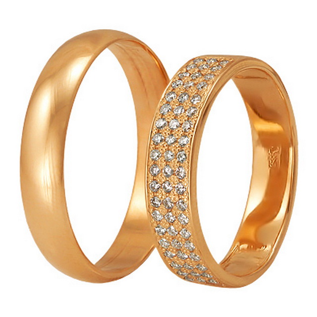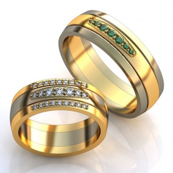 Rings of gold with precious stones are impressive breadth of choice of models. If such accessories are not affordable for a couple, there are models decorated with cubic zirconias. This stone is practically not inferior to precious stones, it is often almost impossible to distinguish it from a diamond ring, and the cost is much lower. Also rings with inserts made to give as an engagement decoration, it is a traditional option.
