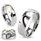 The most common model of jewelry for a wedding celebration is complementary rings. Very original and unusual look products, which are different images that make up a single. For example, the two halves of the heart that make it up completely.
