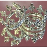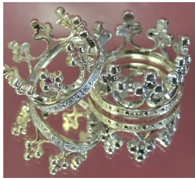 For example, for a real king and his queen there are rings in the form of crowns. A very original way to emphasize simultaneously your marital status and status in society. They are more often made of platinum, silver, gold, and decorated with precious and semi-precious stones.