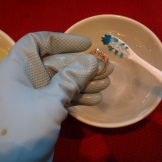 - Dilute a few drops of hand soap or dishwashing detergent in warm water, soak for 20 minutes;