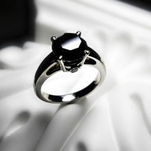 Ring with one black diamond is a classic solution in modern processing.