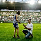 Watching fashion for girls can be in love with engagement jewelry with Swarovski crystals, which are very beautiful shine in the light of spotlights. The crystals made according to special technologies look very similar to diamonds, but will cost the groom several times cheaper.