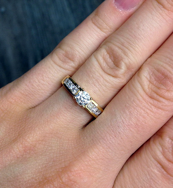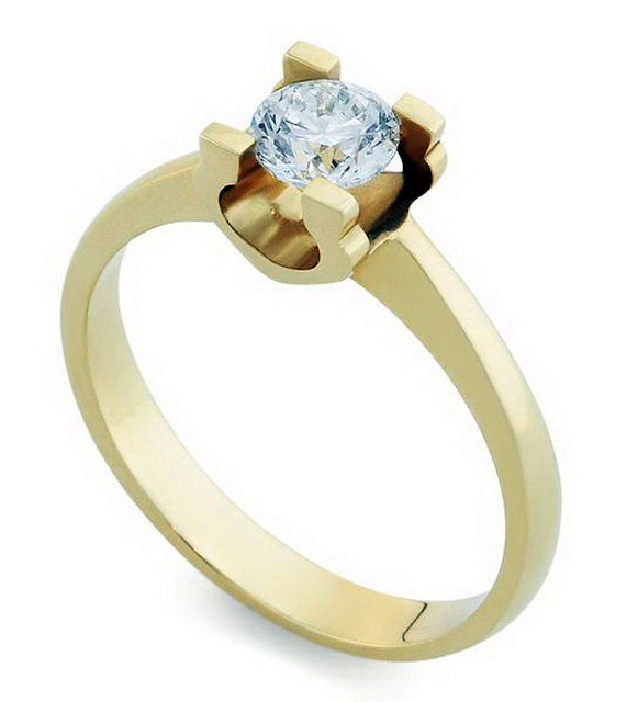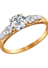 - The classic for such a momentous event is a gold ring with a diamond. In addition to the various shades of gold metal, sometimes jewelers use platinum. Classic models assume the presence of one large diamond, two stones as a symbol of a pair or three, denoting the past, present and future of the relationship between lovers. In the case of several stones, one of them can be a diamond, and the rest at the discretion of the groom. Also there are options with three small diamonds, which together form the illusion of a large stone.