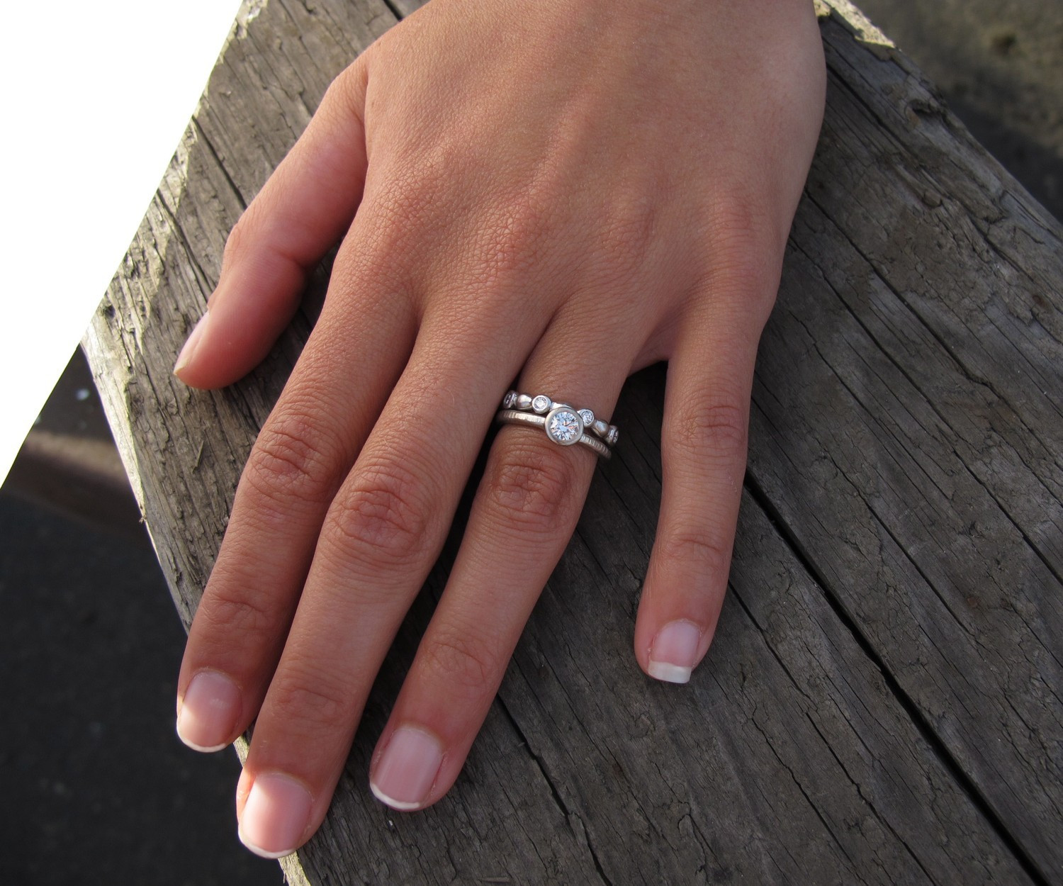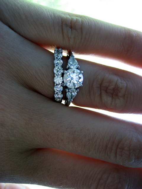 - If a girl wants to wear an engagement gift after the wedding, together with a wedding ring, then a double ring would be a good option. To make the two rings an ideal composition and look good on your finger, some jewelry brands began to produce double rings consisting of engagement and wedding. The first is usually decorated with an impressive stone, and the second is made in the appropriate style.