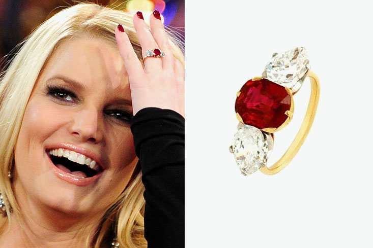For a whole year, a $ 500,000 ring decorated with a baguette-cut diamond was created, which Brad Pitt presented to Angelina Jolie. But Jessica Simpson's fiancé showed originality and gave his lover a jewelery with a 4 carat ruby and two vintage-style diamonds that cost him $ 100,000.