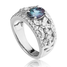 Alexandrite is difficult to find on the shelves of ordinary jewelry stores, as it is too rare. It looks great in all metals. Let's take a closer look at the models of fashionable women's rings.