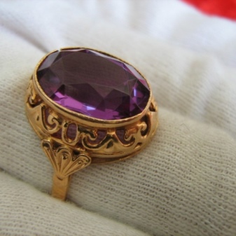 On the shelves of jewelry stores, you may encounter rings decorated only with synthetic alexandrites. Outwardly, they are almost no different from natural options.