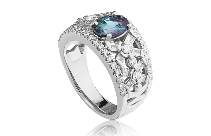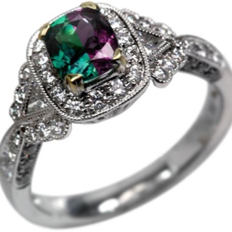 Alexandrite will be a great addition to such a precious metal. Such decorations are very expensive, but their quality and appearance justify the price.