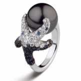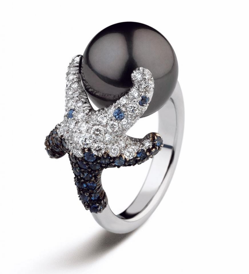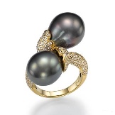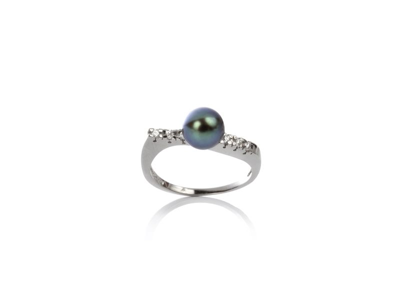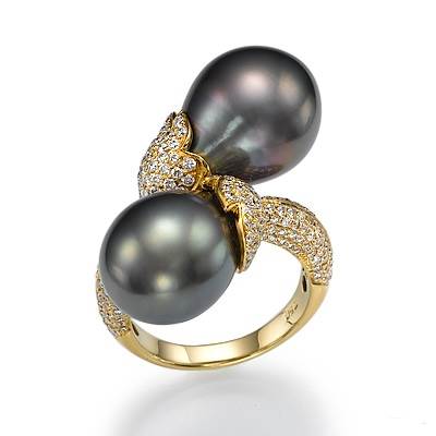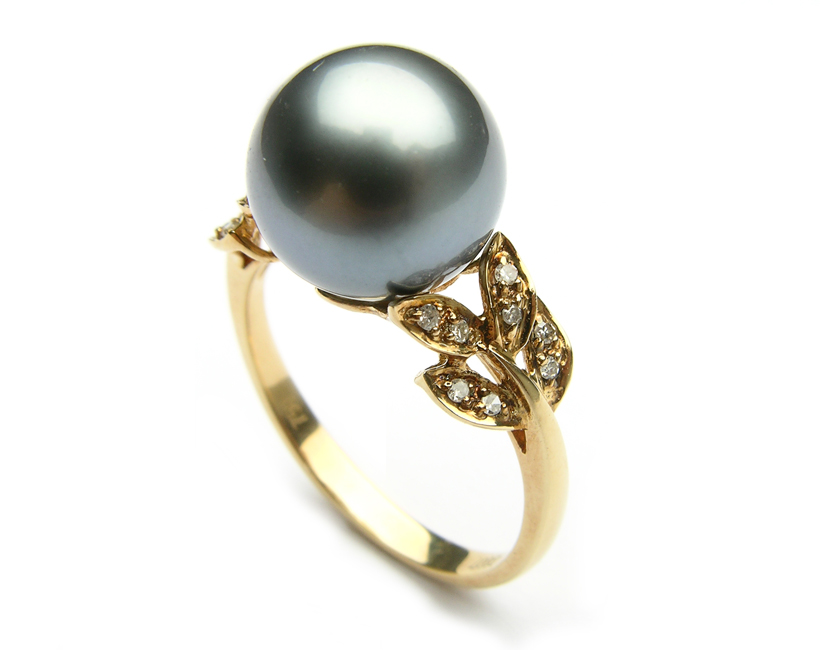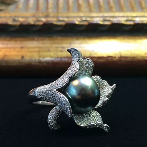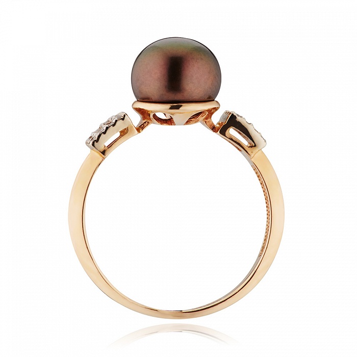 - The most feminine option of the ring is the one where yellow gold and pink pearls are represented. But the most winning option for framing a black pearl is red gold.
