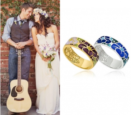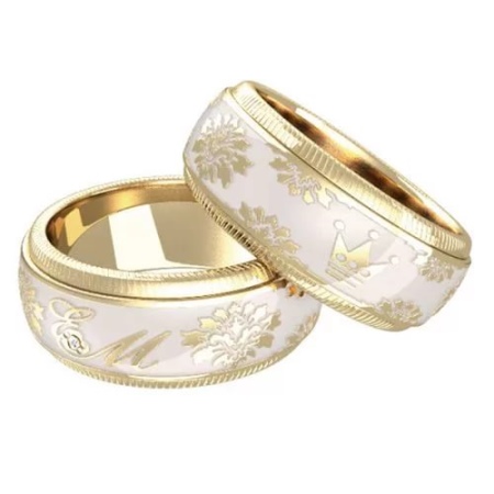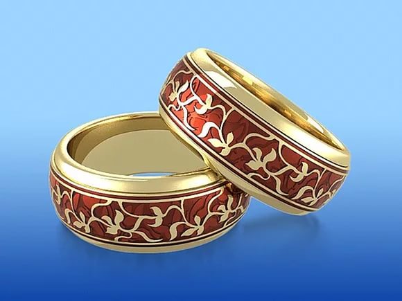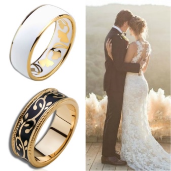Like other wedding rings, enameled models can have an engraving that will please the eye much longer. Like on classic rings, metal is engraved with names, dates and other important and memorable words and numbers. Then the rings are coated.