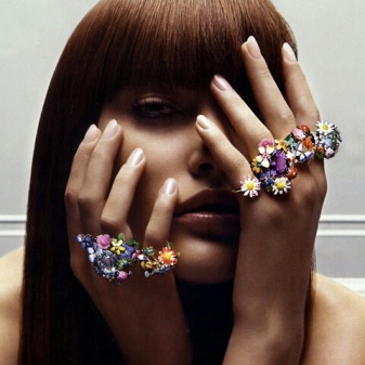 Female models are complemented by stones and other jewelry. Model of female rings can be any.