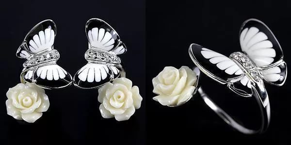 Jewelers complete the products with white or mother-of-pearl enamel with white gold, with black with silver, in this case the metal becomes the main pattern. Jewelery with a bright color coating looks very stylish with yellow or pink gold.