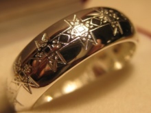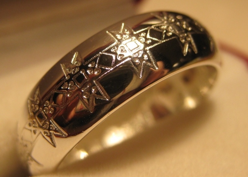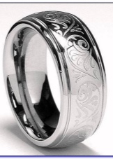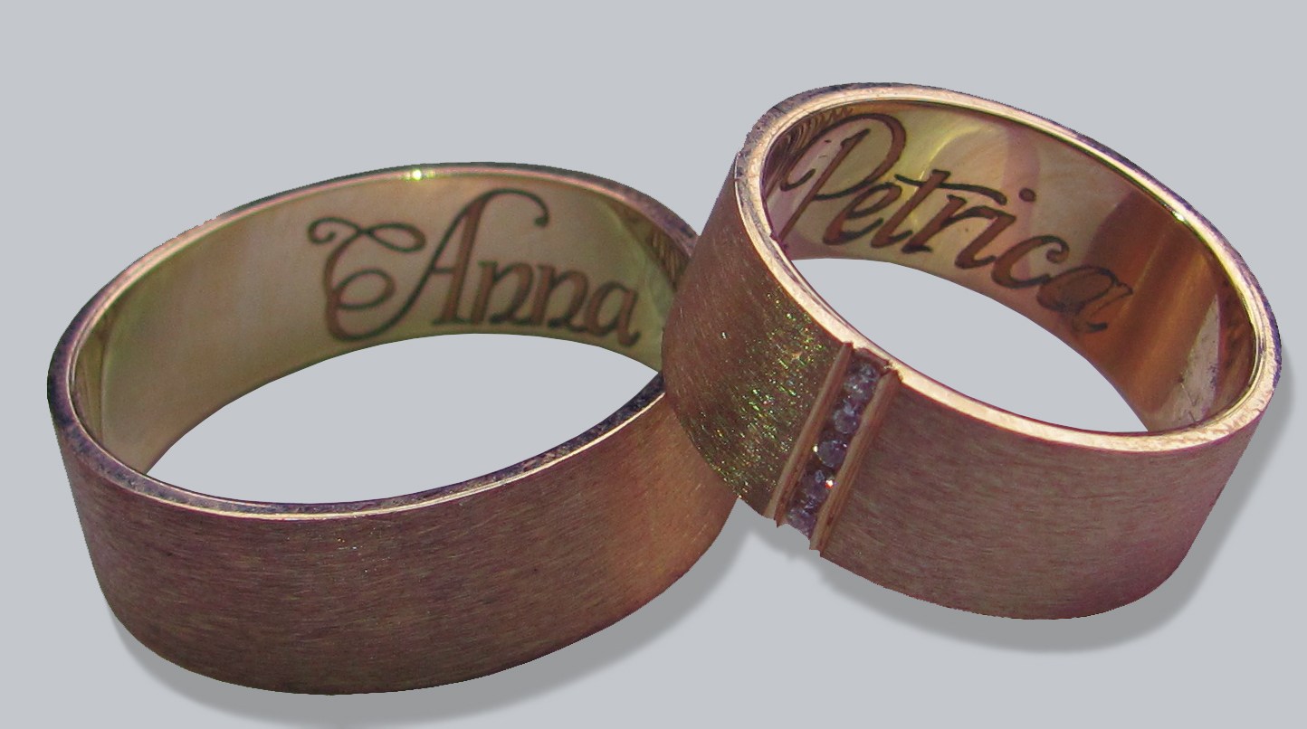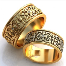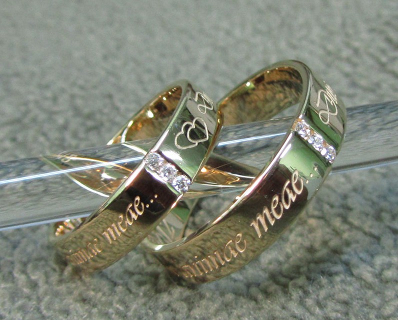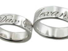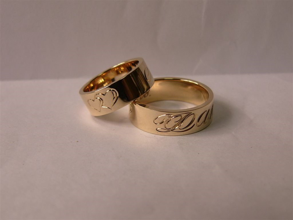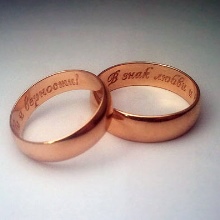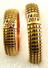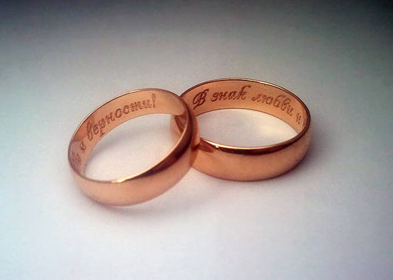 This is the easiest and most inexpensive way to apply patterns on the rings. Engraving is done on a specially designed machine. The only drawback - the inability to make the inscription (image) convex or voluminous. The surface of the ringlet at the same time should be perfectly flat. The size of the machine also limits the size of the engraving.