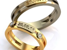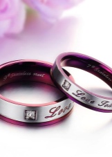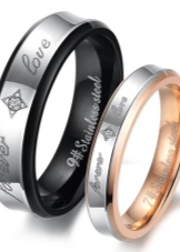 In addition to classic products, newlyweds are offered composite rings with engraving. Invented inscription is placed on the lower base, closed by a wide upper ring. Together they are fastened with a special lock. And if you move the upper part, then the closed record from prying eyes will be visible.