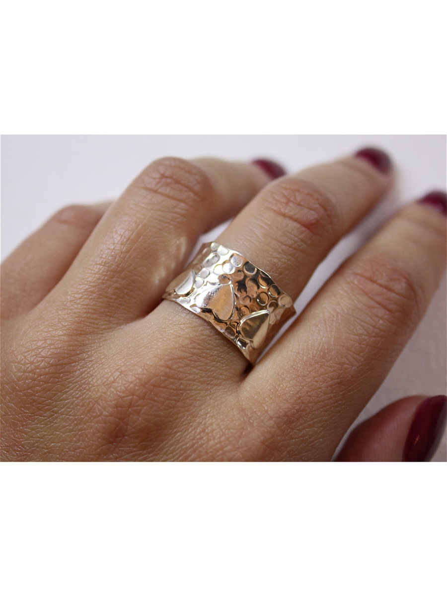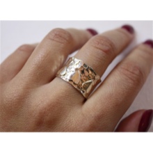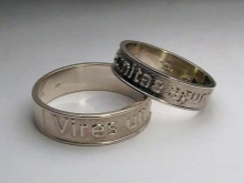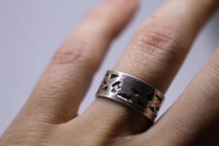 Manually or with the help of a laser, separate sections between the letters on the precious metal are cut off; as a result, the relief becomes voluminous and rises above the ring surface.
