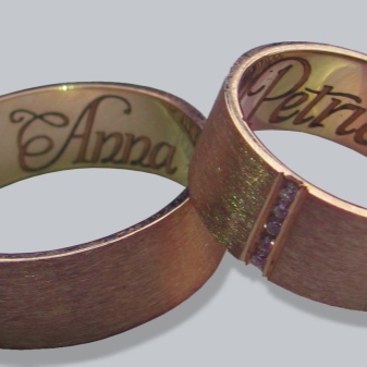 In this way, you can engrave not only on the outer surface, but also on the inside. The latter type is practical, since it is not exposed to the aggressive environment. And for the newlyweds is a personal message.