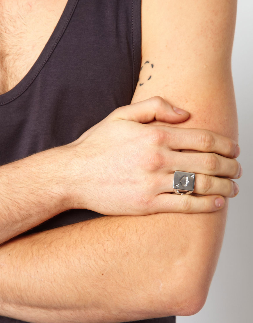 In addition to names and memorable phrases, it is interesting for many to wear a ring with a plot drawing or with special characters.
