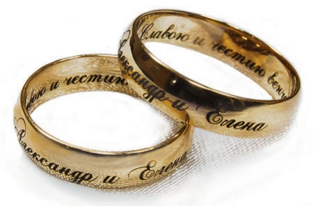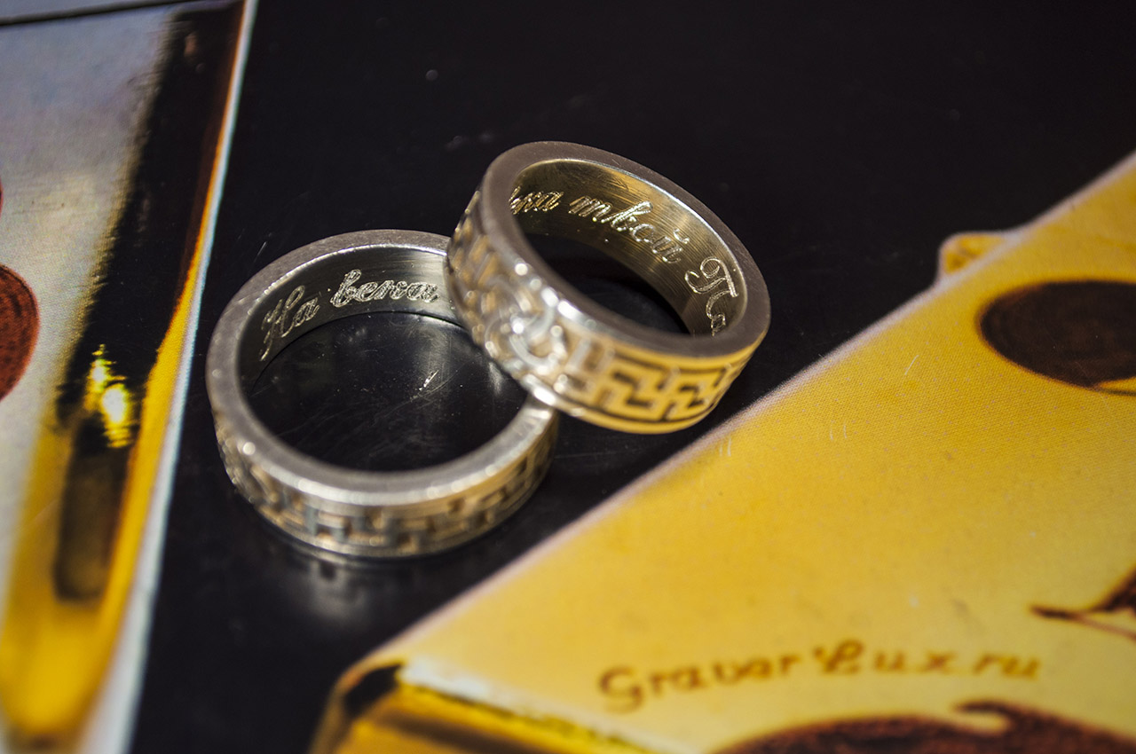 Engraving on the ringlets varies in technology and method of application. The importance of the font and its size plays an important role.
