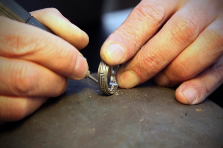 Engraving is obtained by “sinking” as a result of drawing recesses on the ring with the help of a diamond needle or mechanical machine.