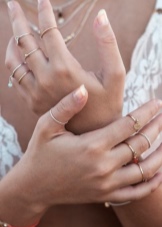 - As a rule, neat rings with a small stone look harmoniously on young beauties. They emphasize their natural charm and give the image an unobtrusive sheen.