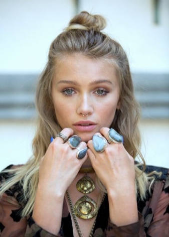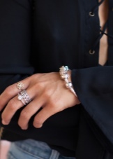 - On a wide palm, products with miniature pebbles are simply lost and are no longer visible. It is recommended to choose jewelry with a large stone.
